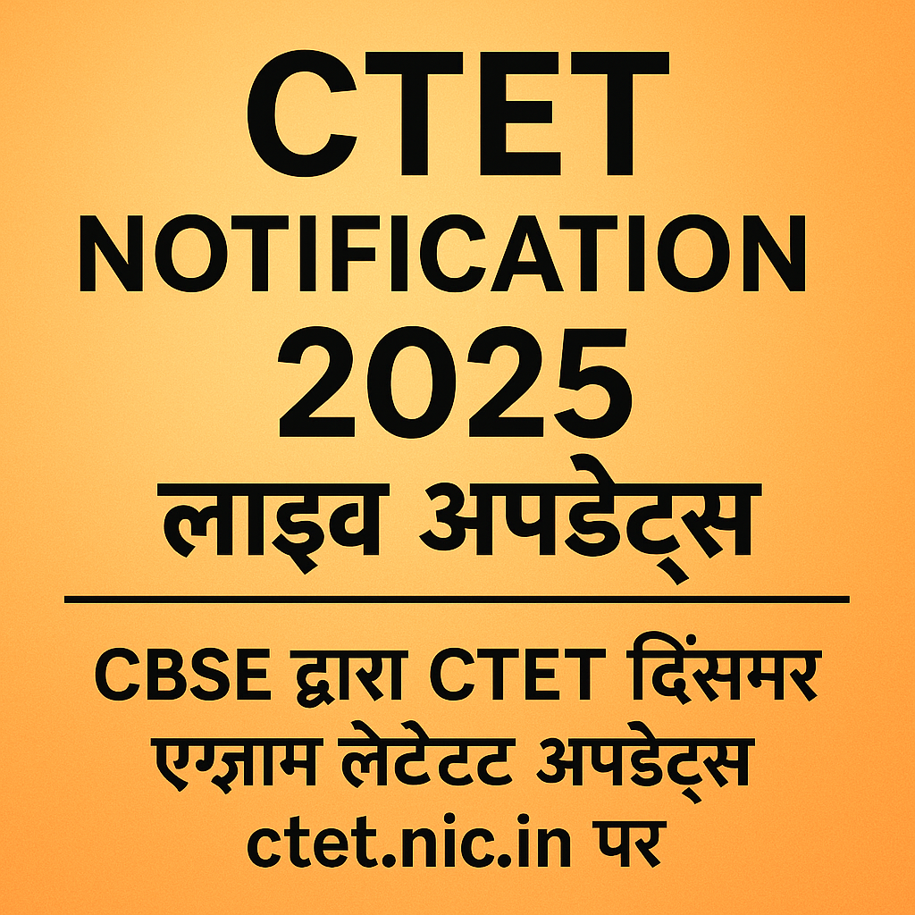 CTET Notification 2025 लाइव: Central Board of Secondary Education (CBSE) द्वारा CTET दिसंबर 2025 एग्जाम नोटिफिकेशन जल्द — ctet.nic.in पर लेटेस्ट अपडेट्स